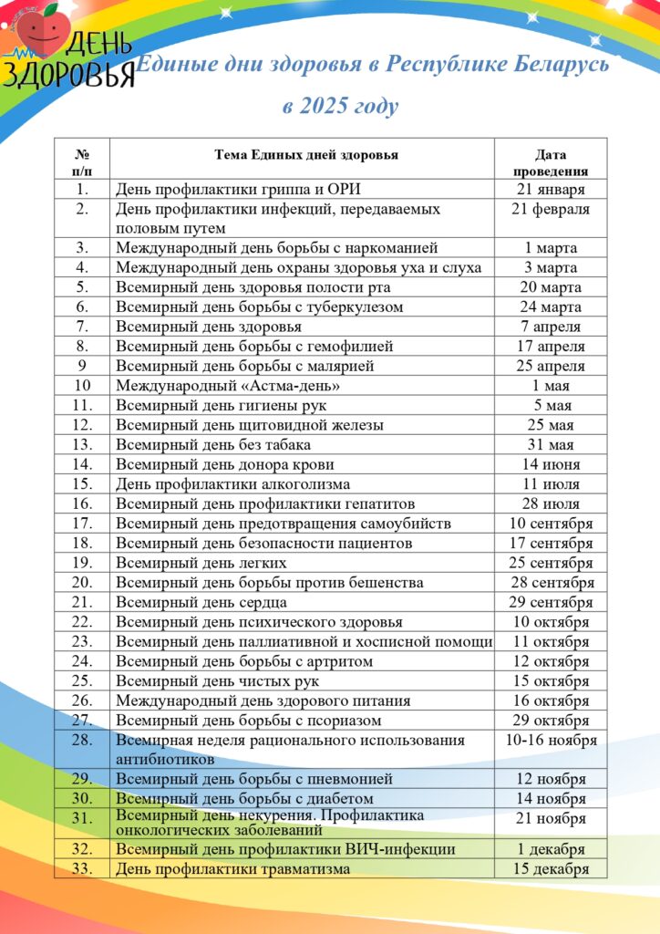 Единые дни здоровья в Республике Беларусь в 2025 году