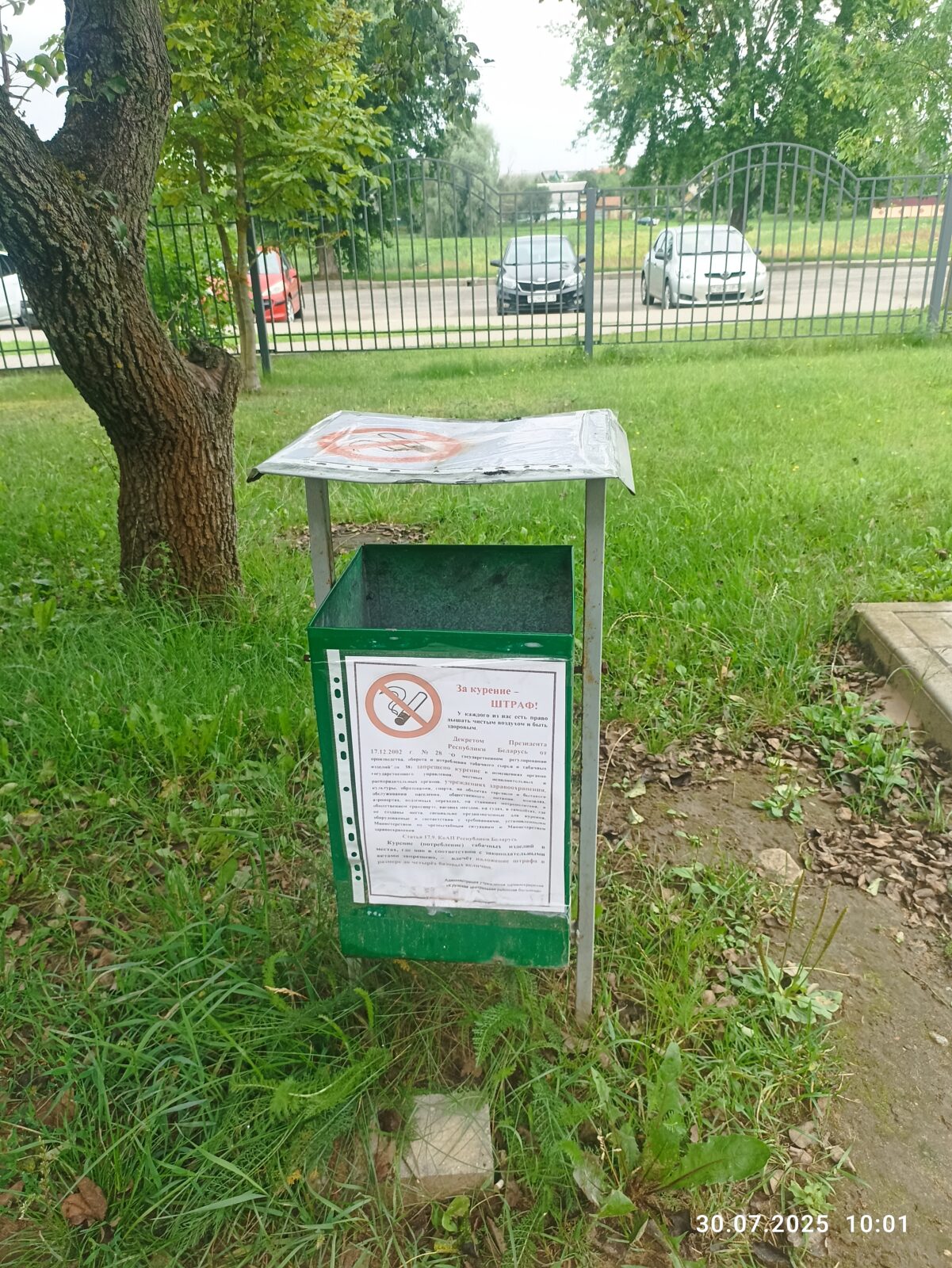 В УЗ «Крупская ЦРБ приказом главного врача №58 от 24.01.2025 года, курение на территории запрещено. На территории установлены места для курения обозначенные знаком «Курение разрешено», оборудованные металлическими урнами и огнетушителями. Ежемесячно по графику согласованному с РОВД г. Крупки проходят рейды по контролю за выполнением приказа.