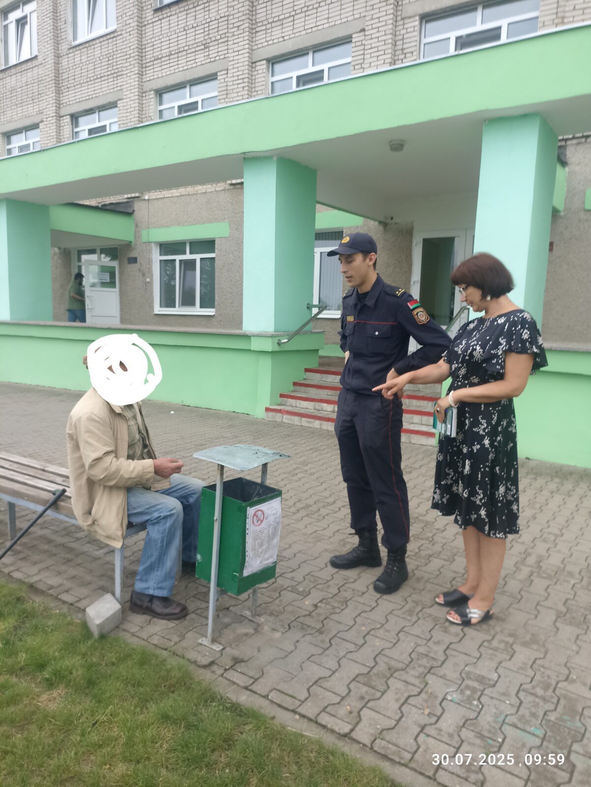 Так 30.07.2025 года в ходе рейда с участковым Савицким А.П. и членом комиссии о запрете курения был проведен рейд около главного входа в поликлинику. В ходе рейда был выявлен факт нарушения запрета о курении, с гражданином была проведена профилактическая работа.