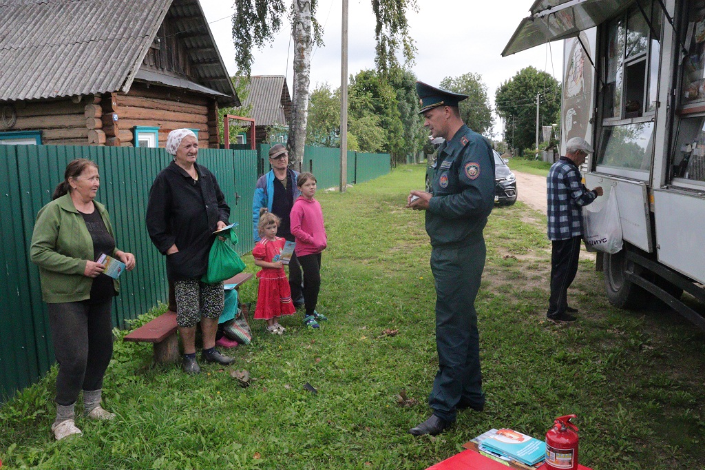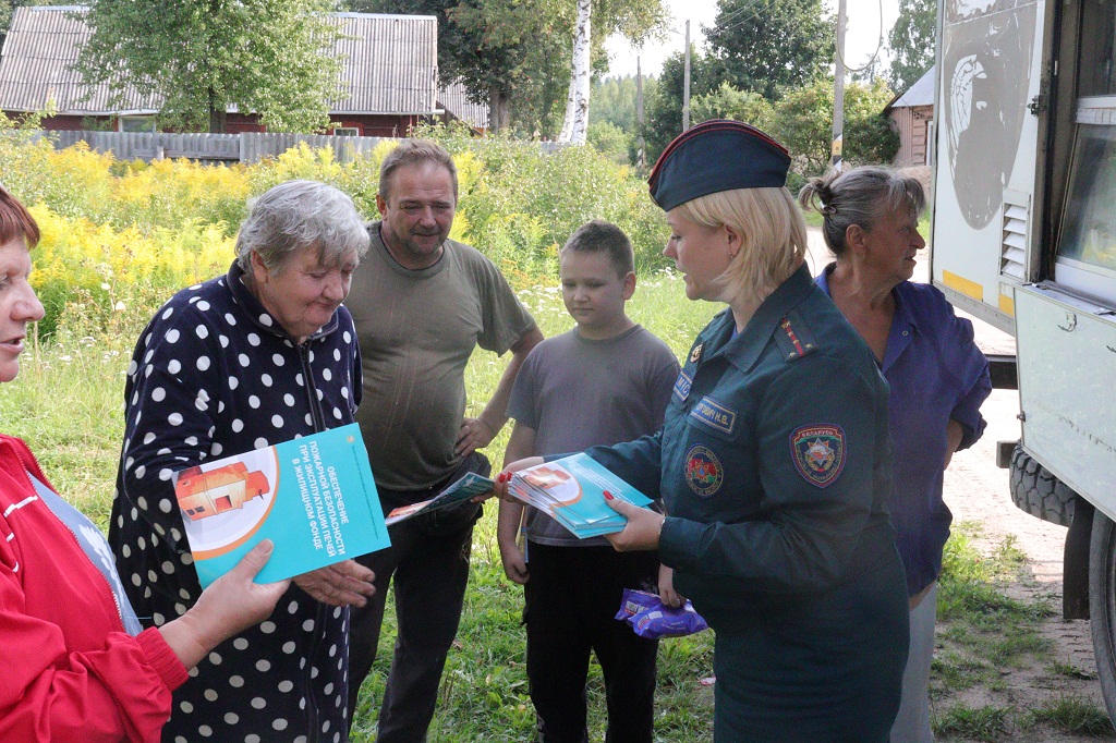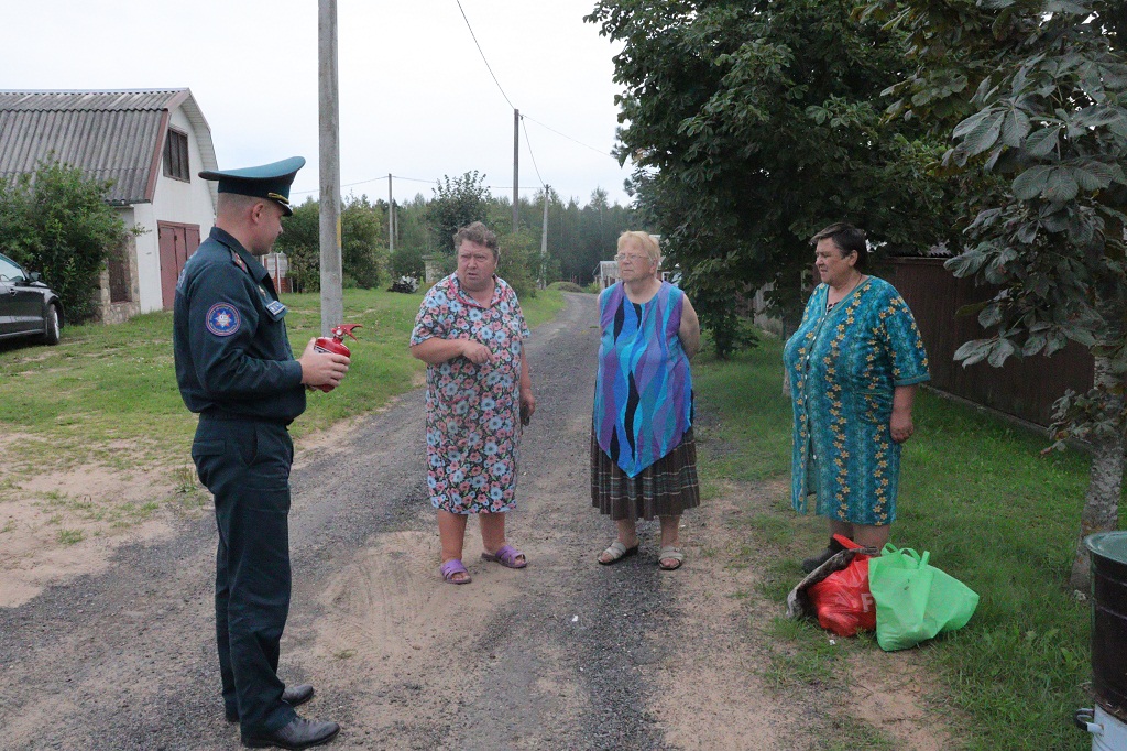 На этом ликбез не закончился: работники МЧС продемонстрировали сельчанам, как пользоваться огнетушителем, напомнили алгоритм действия при пожаре, рассказали о проводимой информационной кампании «Будь рядом с ребенком!», вручили наглядную изобразительную продукцию.