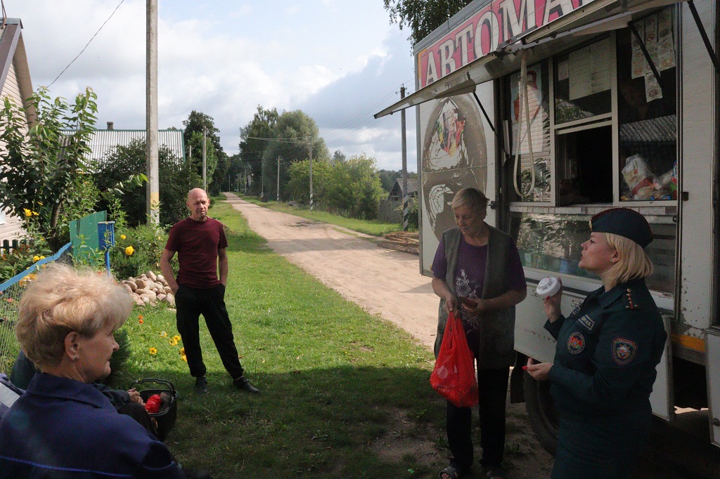 В рамках республиканской акции «С заботой о безопасности малой Родины» крупские спасатели «проложили» маршрут безопасности по ходу следования автолавки Минского облпотребсоюза. Они побывали в сельских населенных пунктах и организовали несколько «безопасных» остановок в д. Заровье, ул.Подлесная г.Крупки.