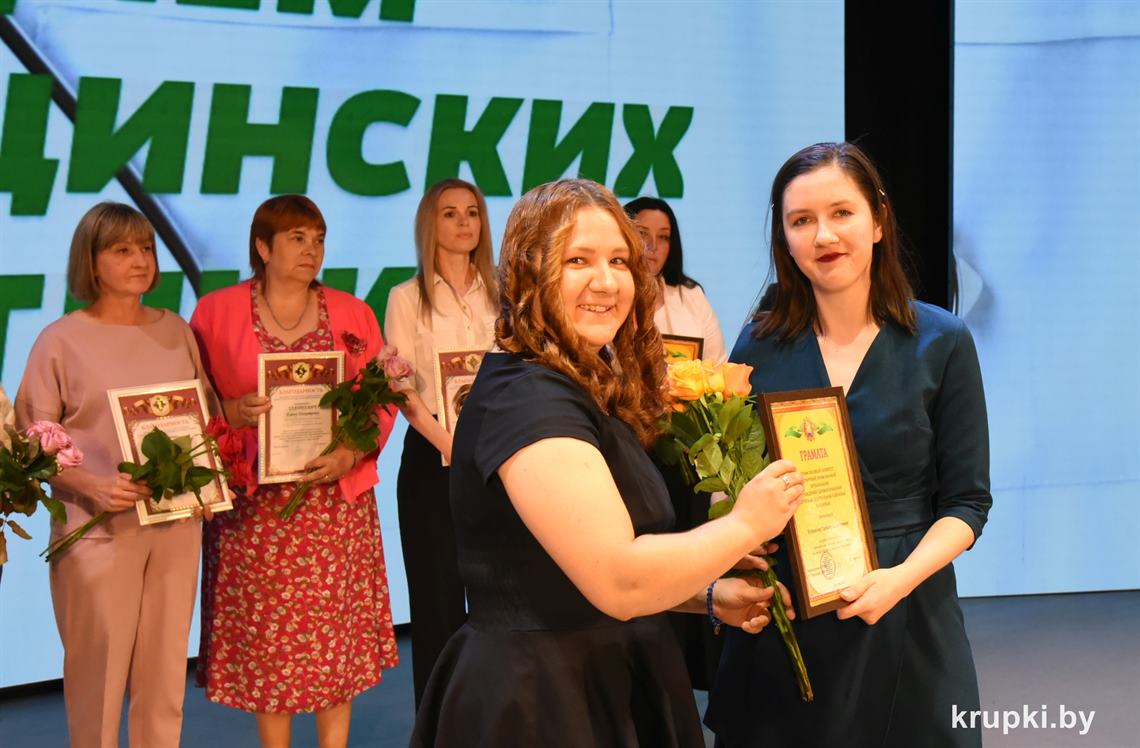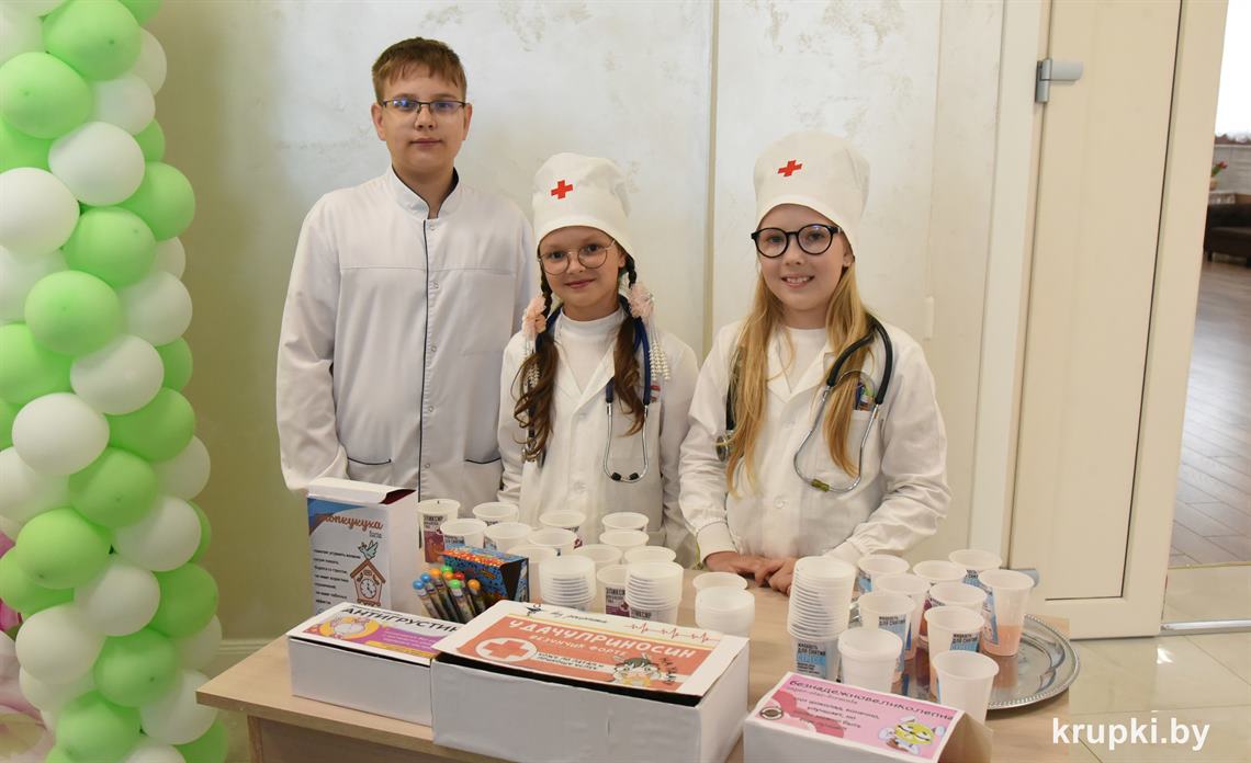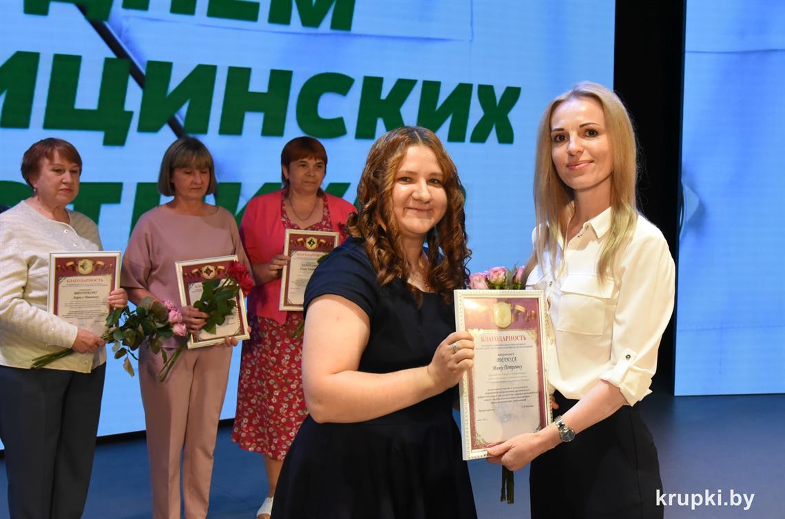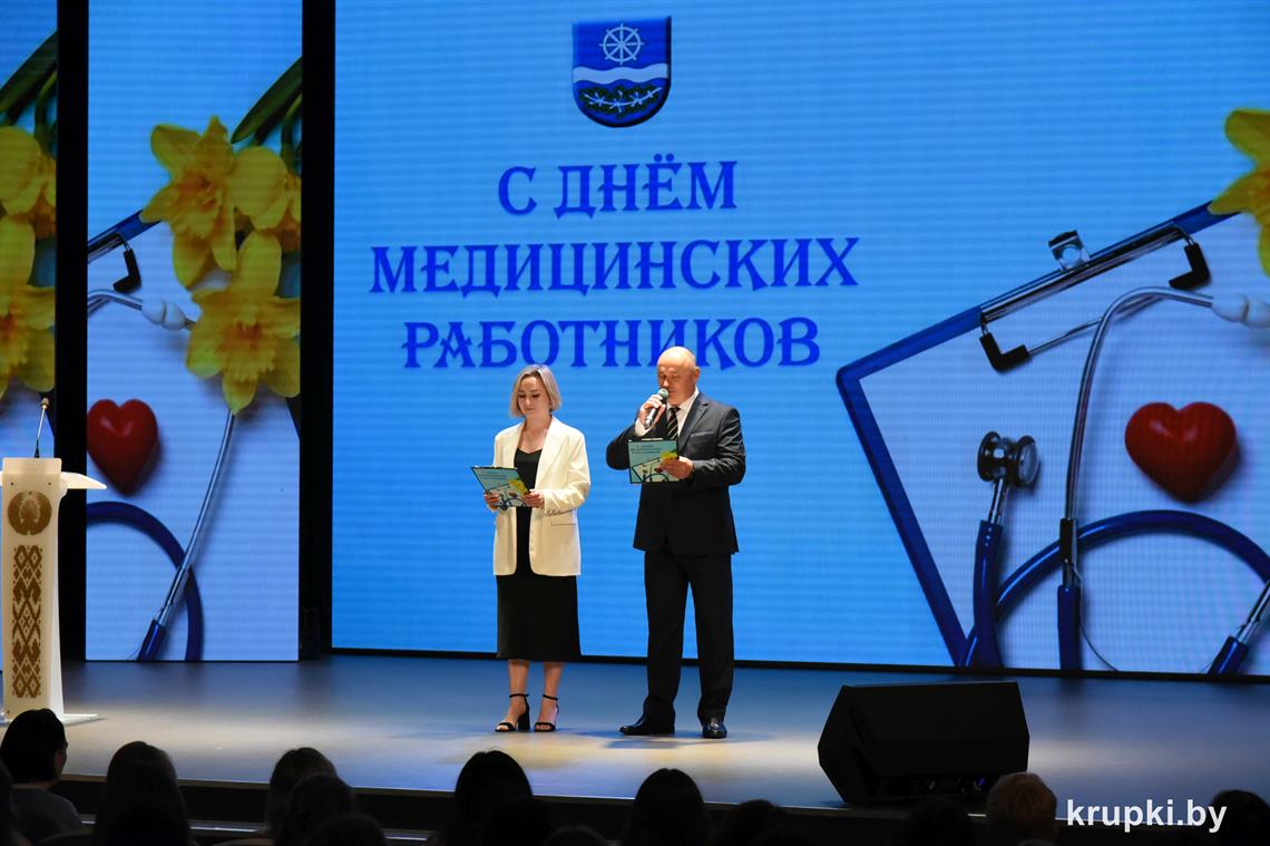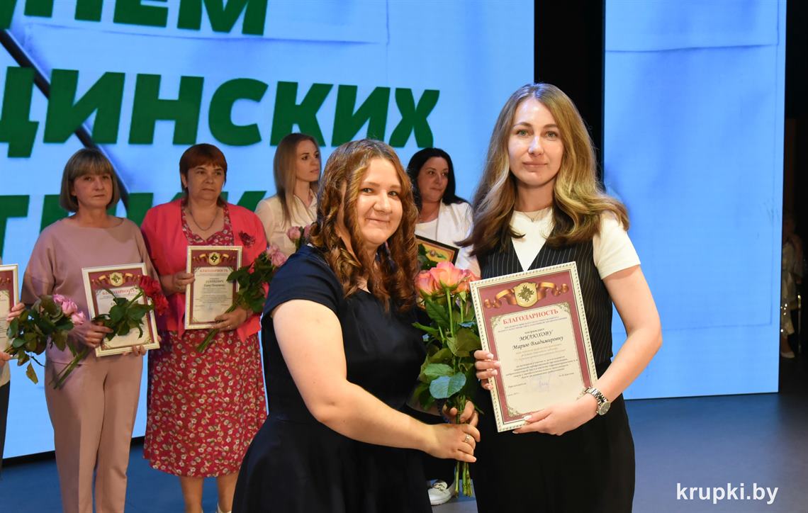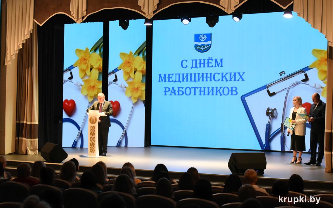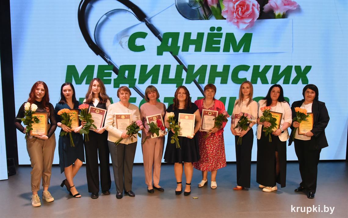 Медицинские работники Крупщины принимали поздравления. На торжество накануне профессионального праздника в Крупском РЦК собрались представители сферы здравоохранения, ветераны труда, почетные гости. Креативно встречали всех участников торжества юные медики – угощали «Антигрустином», «Удачуприносином» и другими сладкими таблетками.