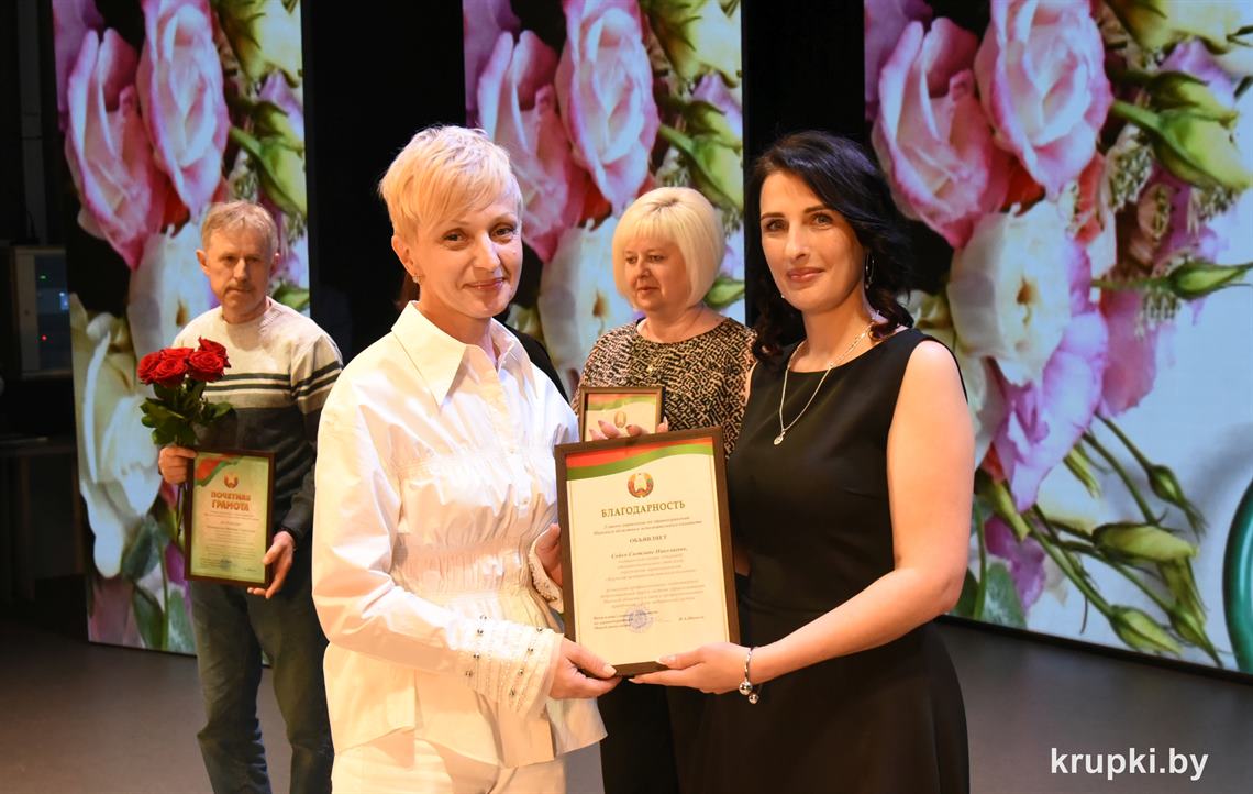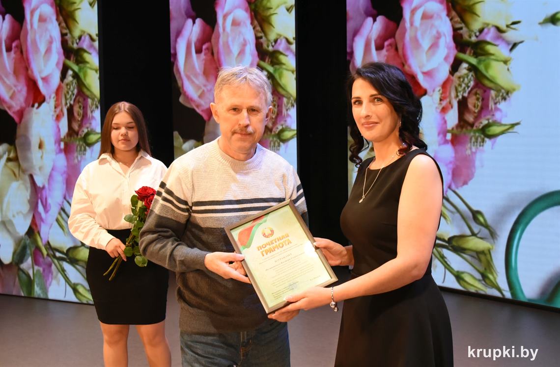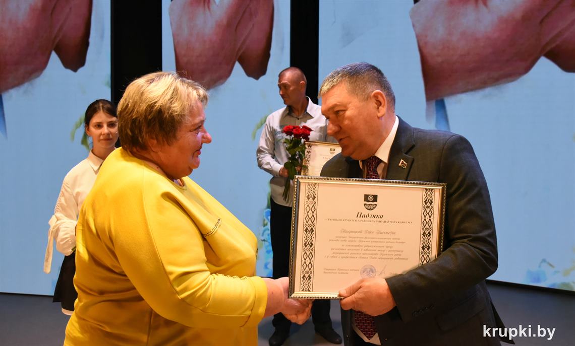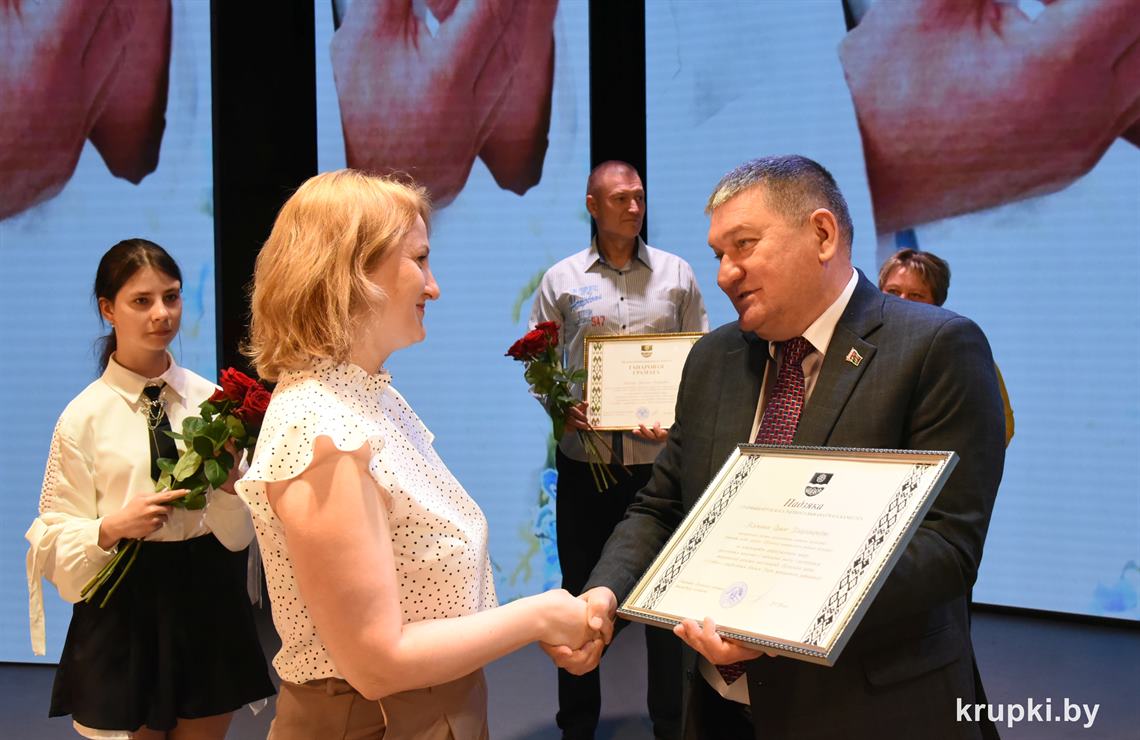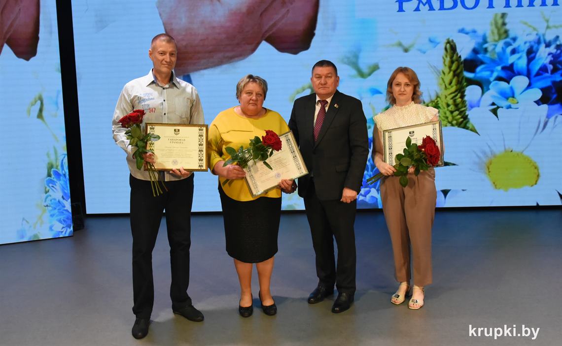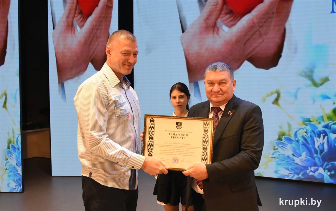 Анатолий Козел вручил Почетную грамоту Крупского райисполкома врачу-анестезиологу-реаниматологу (заведующему) отделения Николаю Горскому. Благодарность председателя Крупского райисполкома объявлена заведующему Докудовским ФАПом Раисе Макрицкой и медсестре онкологического кабинета поликлиники Ирине Клименок.