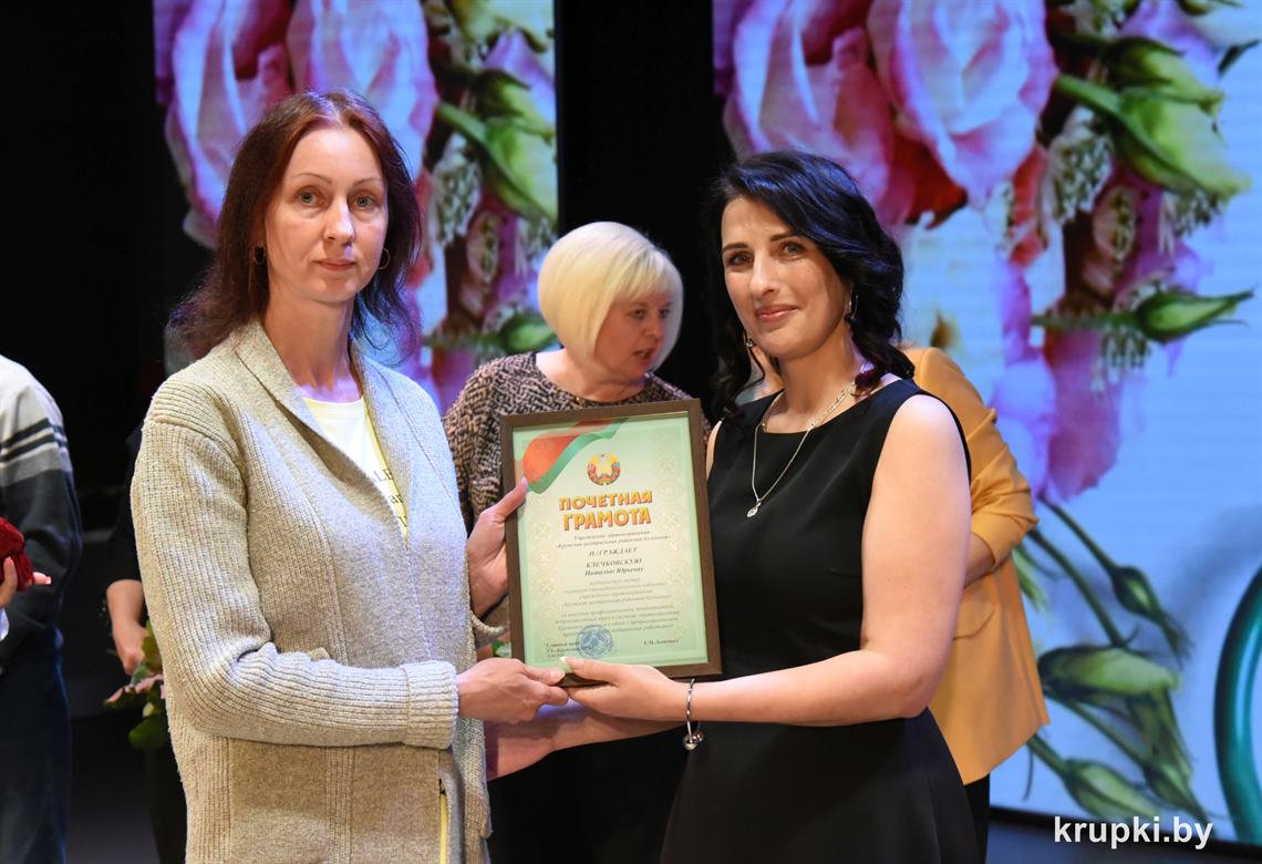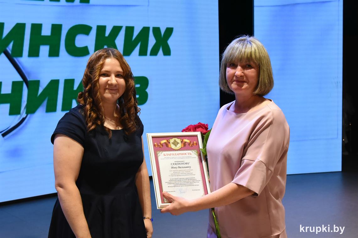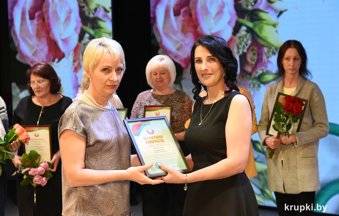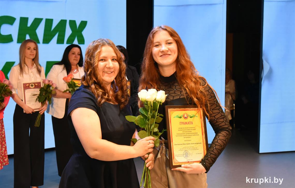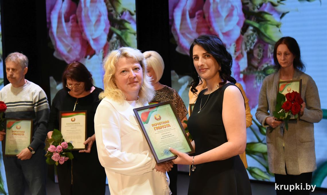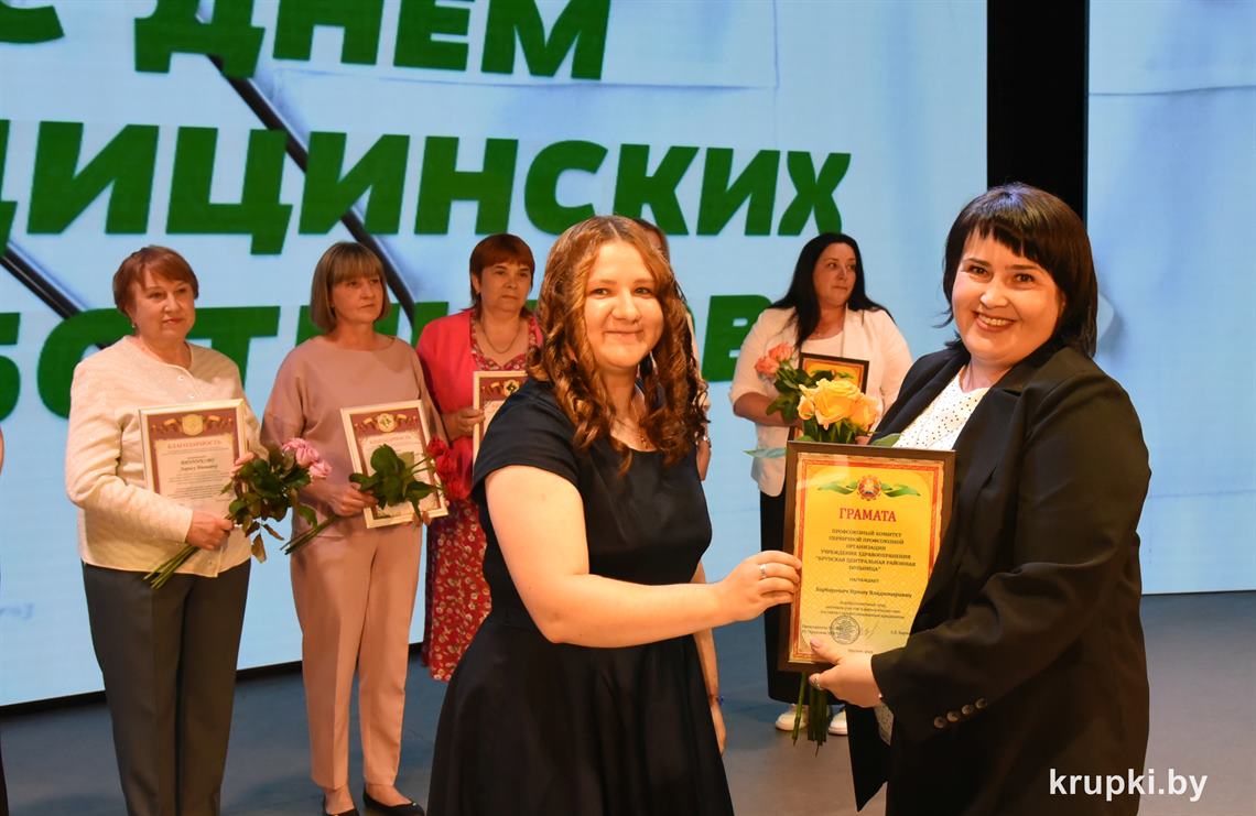 Поздравила коллег главный врач Крупской ЦРБ Екатерина Леонович и провела церемонию награждения. Почетной грамотой главного управления по здравоохранению Минского облисполкома награжден врач-терапевт (заведующий) Виктор Малиновский. Благодарность главного управления по здравоохранению Минского облисполкома объявлена: заведующему Хотюховским ФАПом Анжеле Афанасьевой, медсестре эндоскопического кабинета поликлиники Наталье Демьянковой, медсестре (старшей) стоматологического отделения Светлане Сойко, медсестре терапевтического отделения Галине Реут. За качественный добросовестный труд ряд работников награжден Грамотами и Благодарностями Крупской ЦРБ.