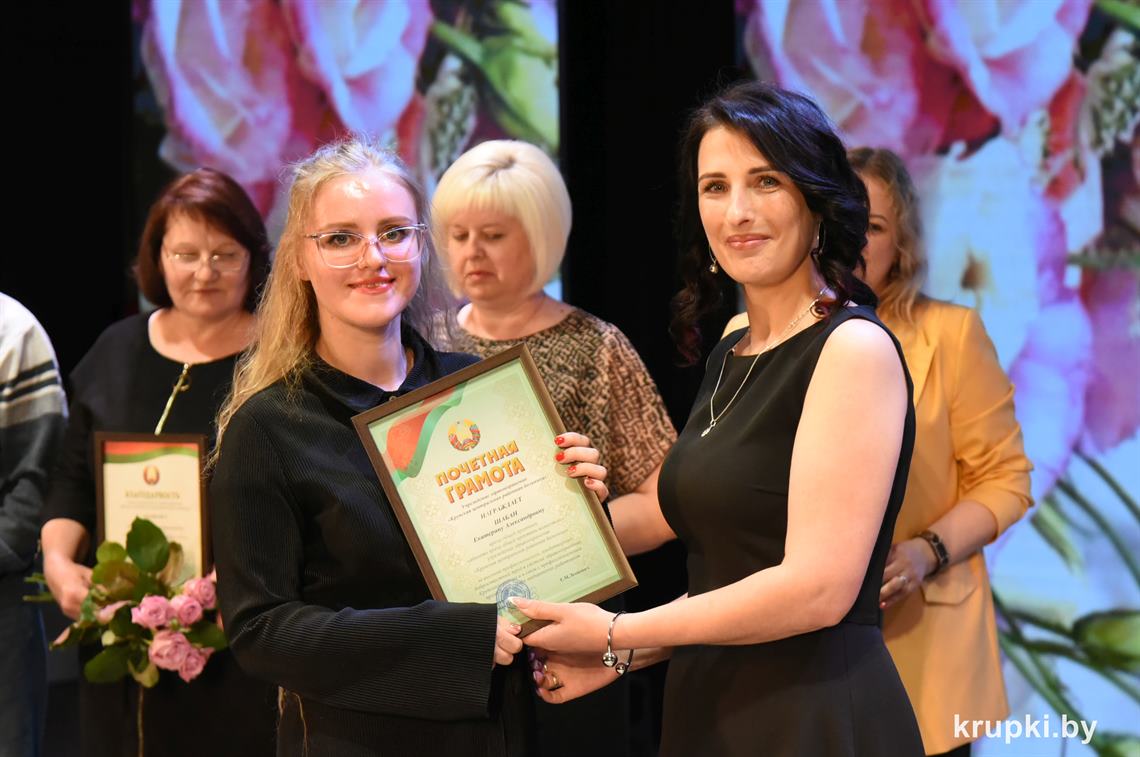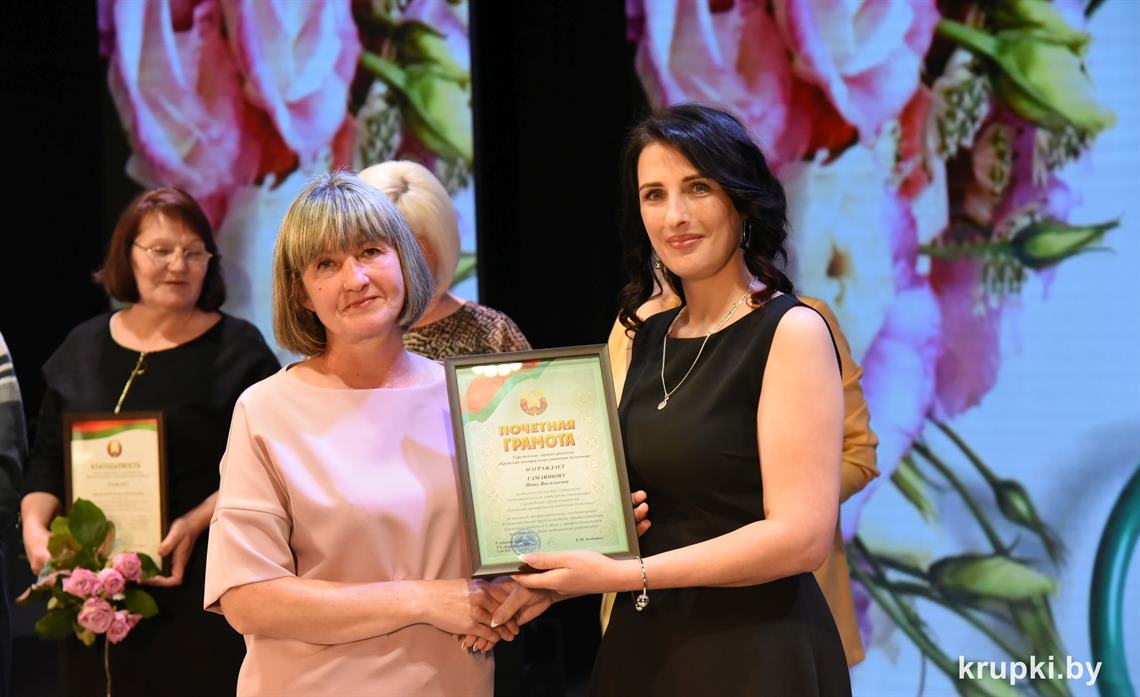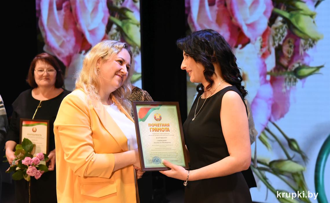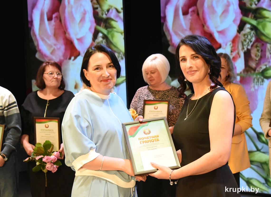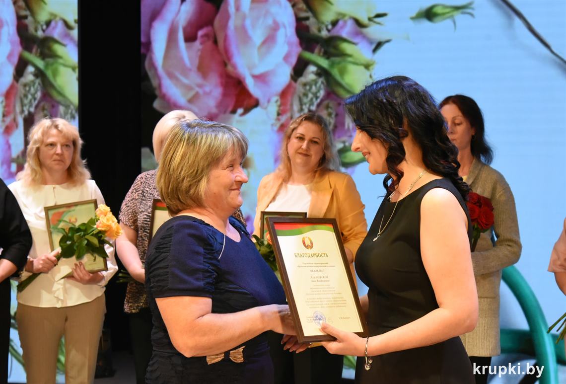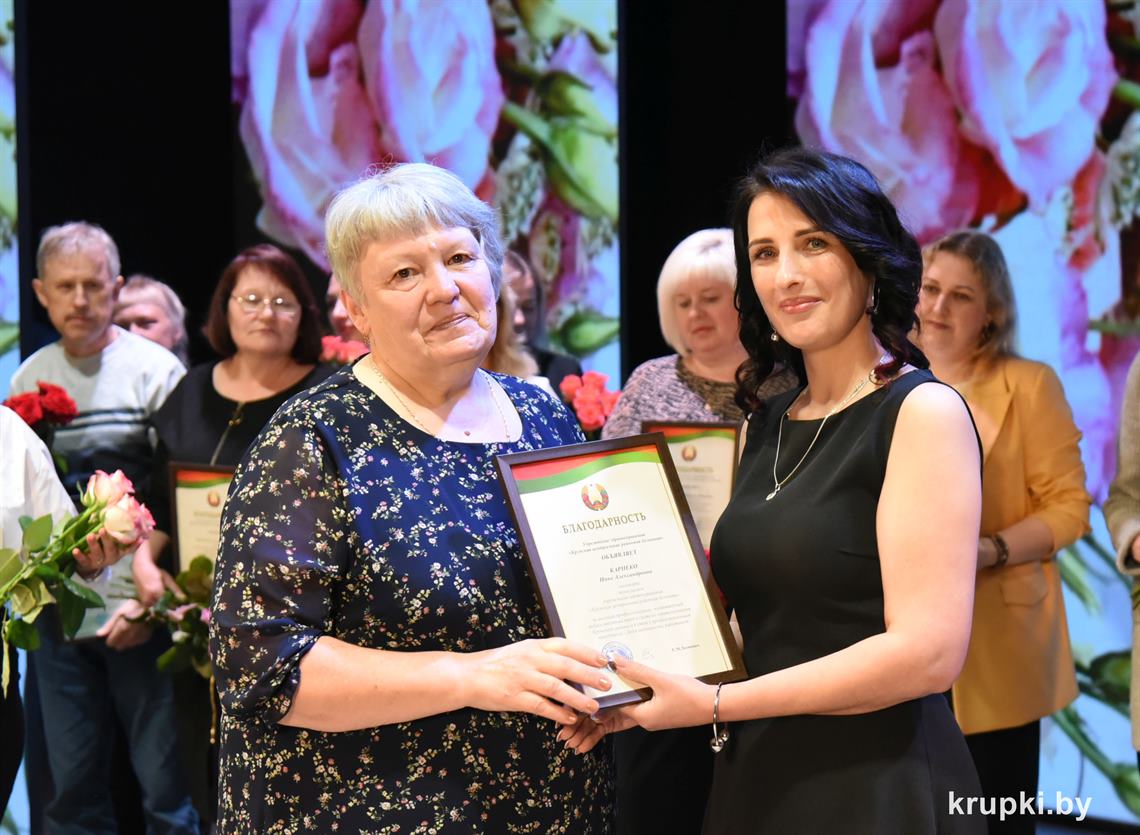 Поздравила коллег главный врач Крупской ЦРБ Екатерина Леонович и провела церемонию награждения. Почетной грамотой главного управления по здравоохранению Минского облисполкома награжден врач-терапевт (заведующий) Виктор Малиновский. Благодарность главного управления по здравоохранению Минского облисполкома объявлена: заведующему Хотюховским ФАПом Анжеле Афанасьевой, медсестре эндоскопического кабинета поликлиники Наталье Демьянковой, медсестре (старшей) стоматологического отделения Светлане Сойко, медсестре терапевтического отделения Галине Реут. За качественный добросовестный труд ряд работников награжден Грамотами и Благодарностями Крупской ЦРБ.