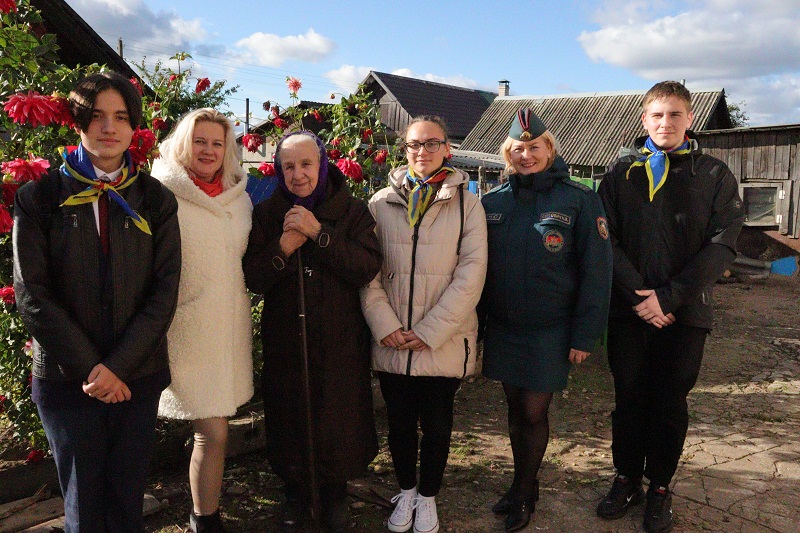 В рамках акции юные спасатели Поселковой средней школы приняли участие в марафоне «112 добрых дел». Они оказали шефскую помощь Ядвиге Францевне Микулич. Пожилая женщина в будущем году планирует отметить 85-летний юбилей, поэтому нуждается во внимании и помощи окружающих. Ребята навели порядок на приусадебном участке, перекопали огород. Вместе с инспектором РОЧС Натальей Сергович проверили домовладение на предмет пожарной безопасности и работоспособность автономного пожарного извещателя. Юные спасатели подарили Ядвиге Францевне угощение к чаю и буклеты по безопасности жизнедеятельности. Ребята напомнили, что в случае пожара главное не паниковать и вызывать спасателей по номеру «101» или «112». За это пожилая женщина одарила школьников сладким гостинцем.