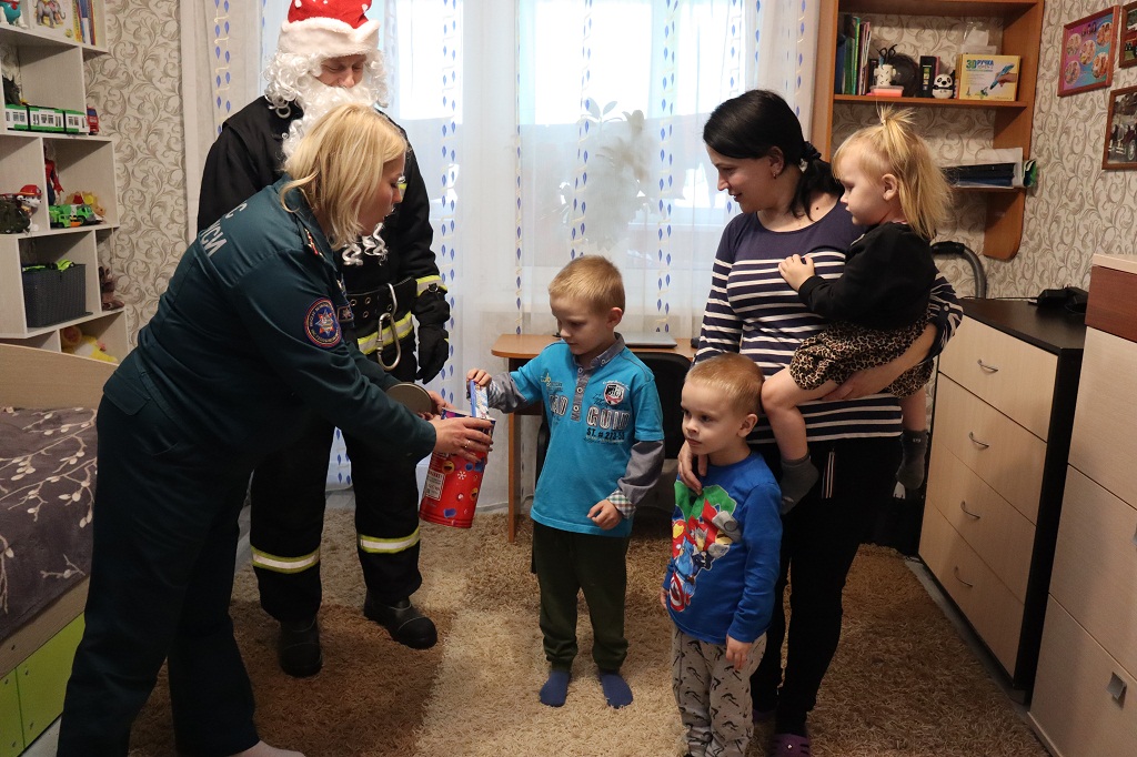 Чтобы предупредить такие ЧС, а также подарить детям праздник, в рамках акции «Безопасный Новый год» работники министерства и районного центра культуры решили заглянуть в многодетные семьи Вороновичей и Грызуновых, в которых воспитываются малолетние дети. Ребятню научить, родителям напомнить об опасности оставления детей без присмотра.