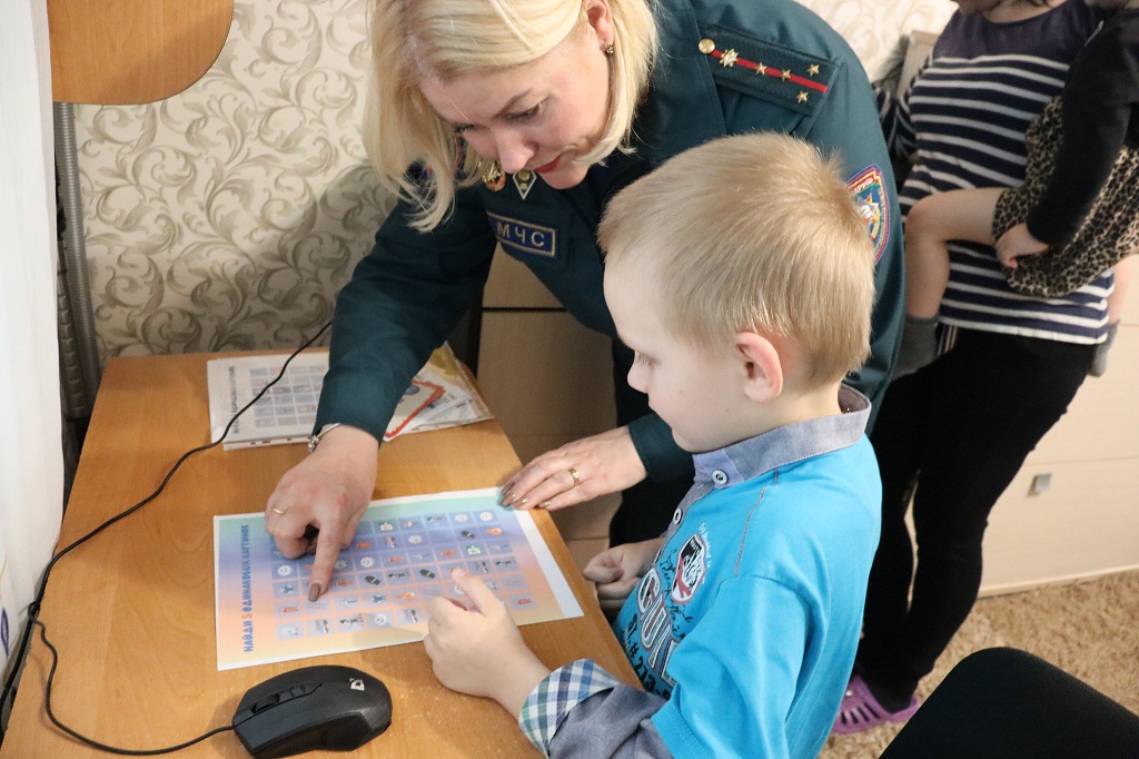 Дети уверенно повторяли азы безопасности за инспектором МЧС.