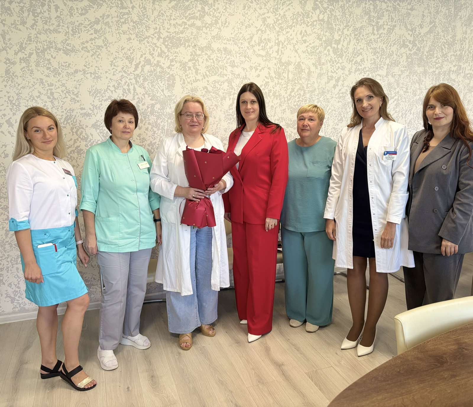С тридцатилетним юбилеем работы в Крупской ЦРБ сегодня (15.08.2025 года) поздравили врача ультразвуковой диагностики — Клещенок Елену Владимировну.