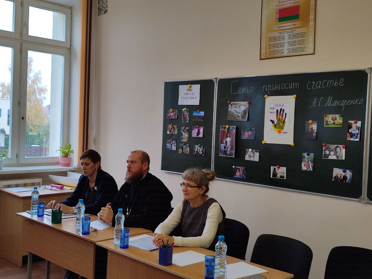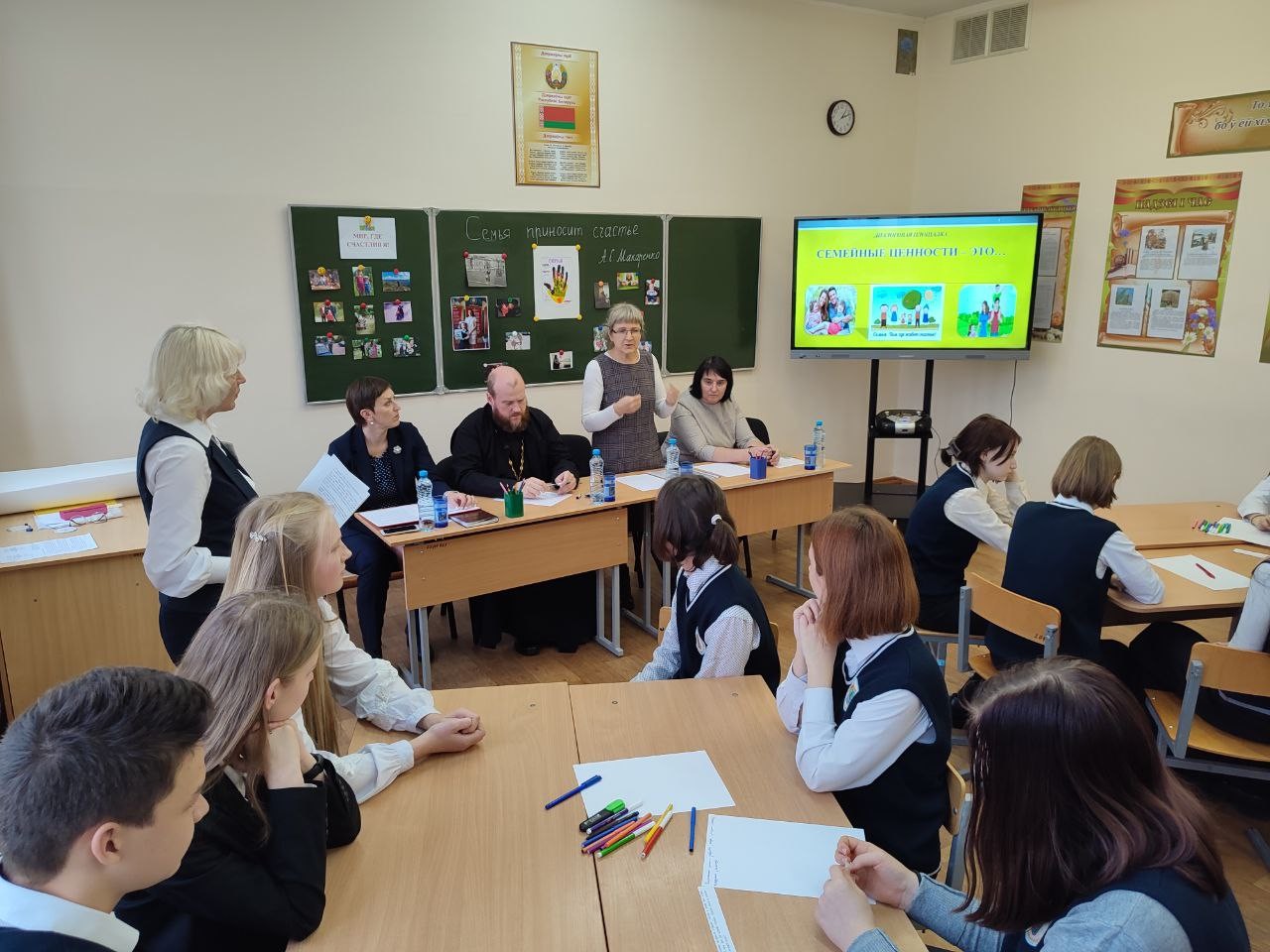 В рамках Недели родительской любви на базе Крупской районной гимназии  состоялась диалоговая площадка «Семейные ценности — это…» с участием начальника отдела ЗАГС Крупского райисполкома Ермолович О.А., врача- педиатра УЗ «Крупская ЦРБ» Малиновской Л.В., священника Иоанна Шибеко, методиста управления по образованию, спорту и туризму Смычёк М.В.