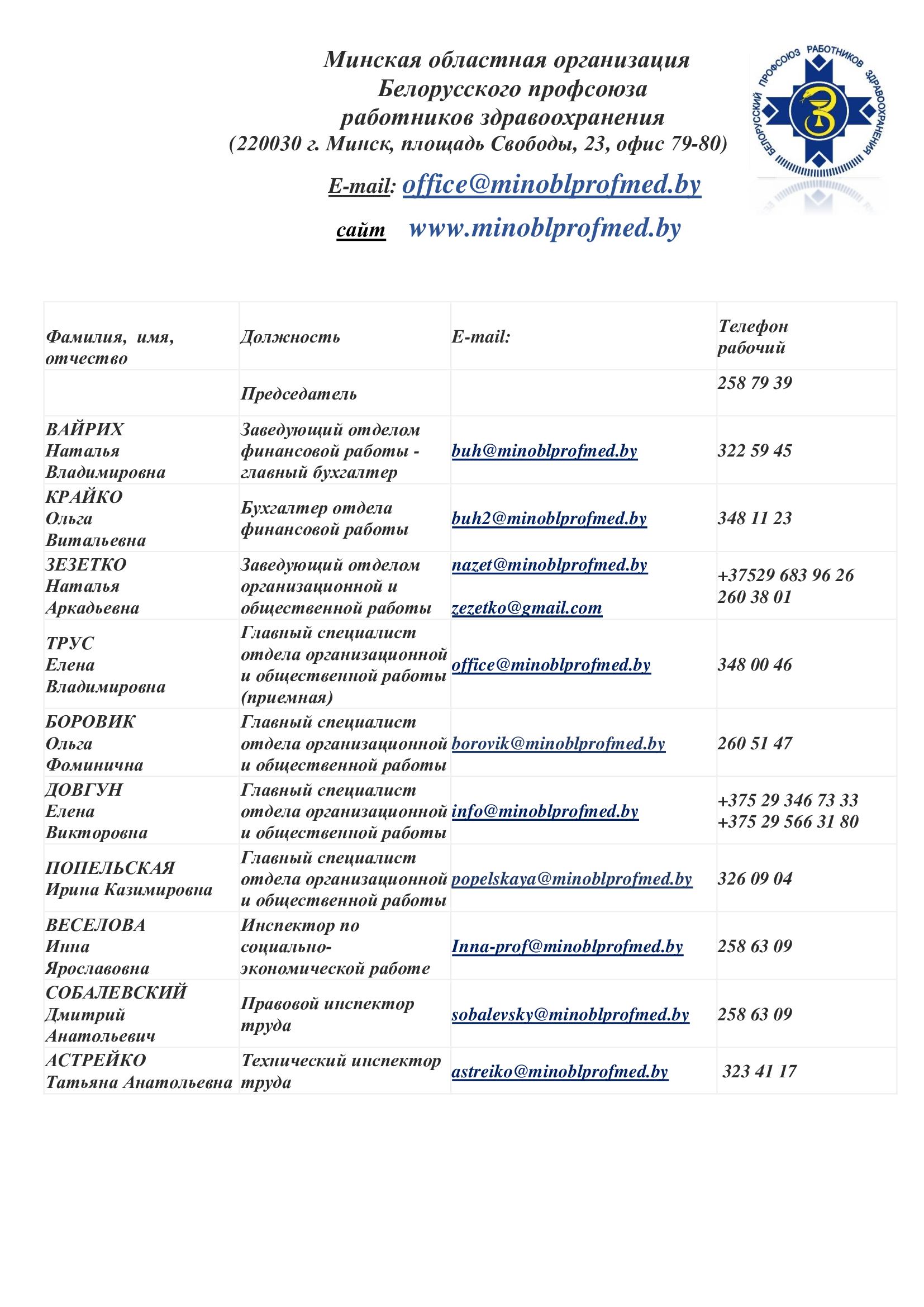 Состав Минской областной организации Белорусского профсоюза работников здравоохранения