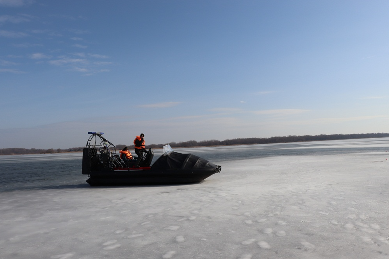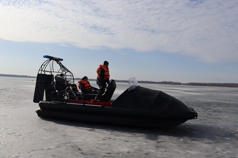 Патрулировать акваторию озера будем на самой современной аэролодке «Пиранья», которая предназначена для проведения спасательных работ на поверхности воды и льда. За окном +9. Прибываем на зону отдыха «Выспа». Лед искрится на солнце. Видны промоины. У берега лед тонкий, местами плавает на поверхности воды. О том, что сейчас пойдем по озеру, даже думать страшно… Однако, инженер водолазно-спасательной службы Владимир Третяк уверил, что «Пиранья» – амфибийное судно. Снарядившись в спасательные жилеты, вооружившись «наглядкой» с ветерком направляемся вдоль побережья в поисках рыбаков.