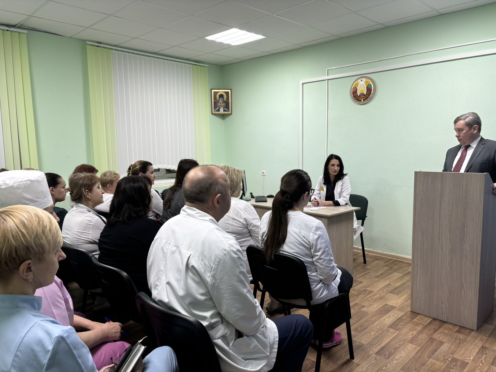 11 декабря 2025 года в помещении учреждения здравоохранения «Крупская центральная районная больница» прошел семинар «Противодействие коррупции: профилактика коррупционных правонарушений». Спикером выступил Олег Викторович Логачев, председатель суда Крупского района.